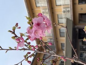 有料老人ホームあったかホーム桂浜(デイサービス桂浜併設)で3月24日桜が開花しました。桜の木は7本植えていまして、うち2本が開花して、残りの5本は今週中には開花しそうです。見ごろは今週末から4月初めになりそうです。